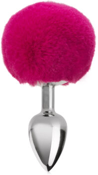 STALOWY KOREK ANALNY Z PUCHATYM OGONKIEM PLUSZOWĄ KITKĄ - 77547639
